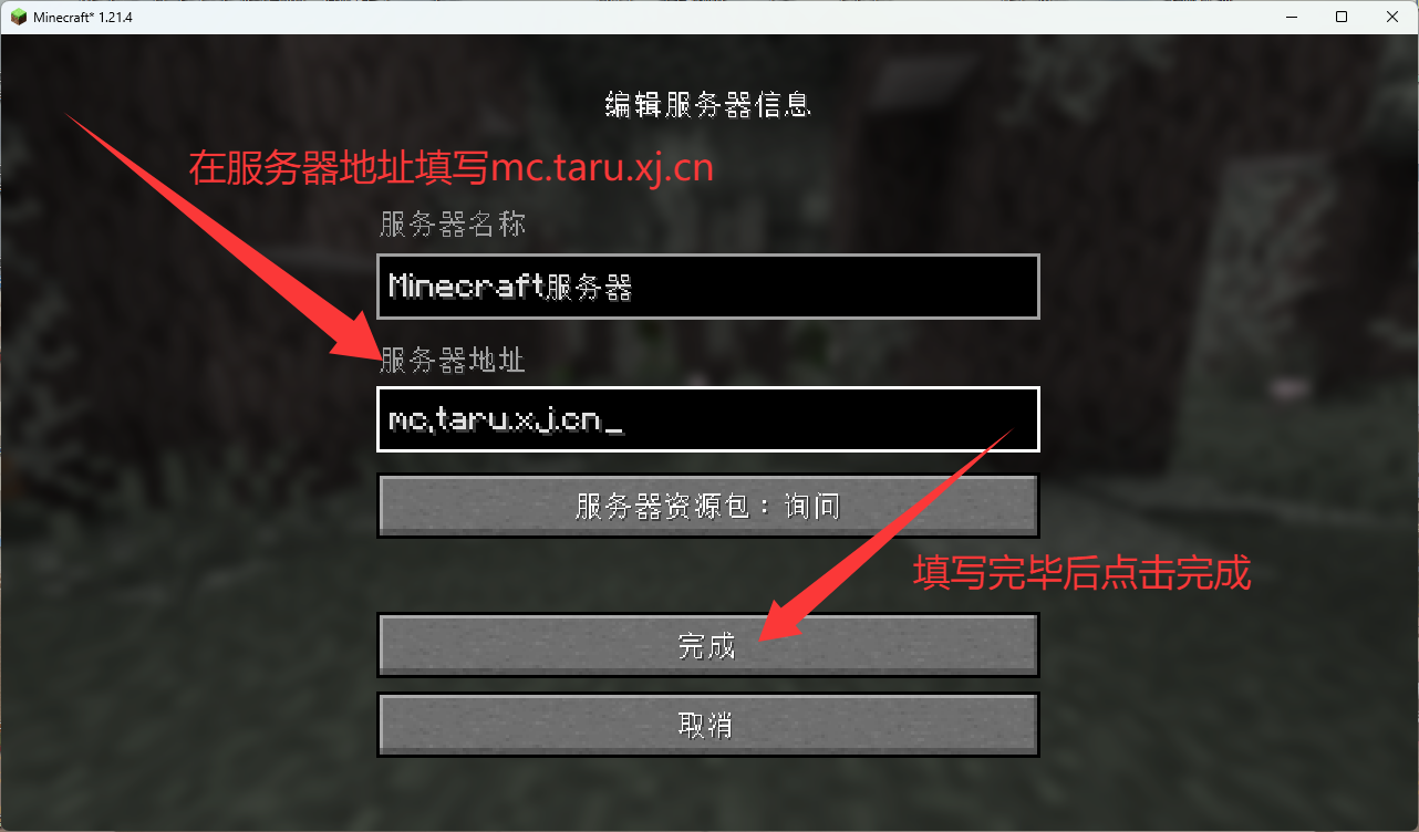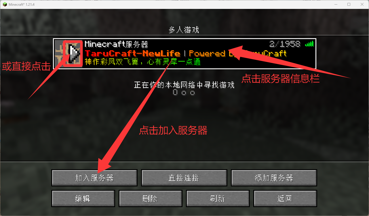 至此您已经完成客户端的全部配置,可以加入TaruCraft-NewLife服务器!