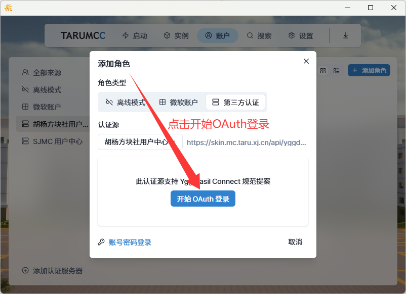 TARUMCC是TaruCraft团队基于SJMC Launcher开发的启动器,该启动器支持 Yggdrasil Connect 草案提出的OAuth验证方式。